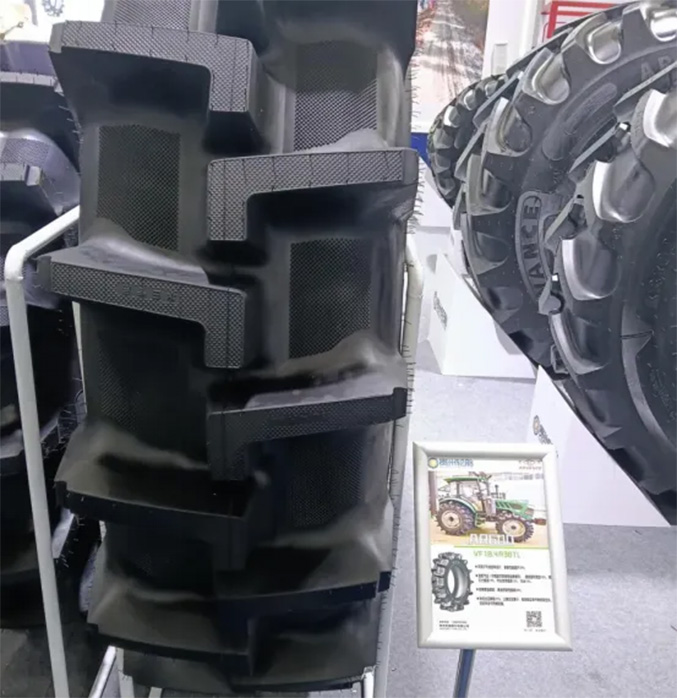 贵州轮胎在本届展会上展出了多款针对性农业子午线轮胎,其中超低压农业子午线轮胎凭借其技术特点,成为特殊农业作业环境的一项有效解决方案。该轮胎具备优异的接地性能与超低压特性,接地面积大于普通轮胎,能更均匀分散机械对土壤的压强,有助于减轻土壤压实,减少板结,保护耕地结构,从而为作物生长创造更好条件,提升产量潜力。贵州轮胎推出的VF低压系列产品,通过结构设计优化,改善了传统斜交轮胎在泥泞环境下易陷车、打滑和磨损快的问题,提升了农机在恶劣工况下的通过性和作业效率。