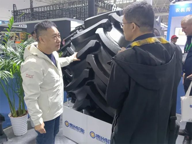 公司党委委员、总工程师王海在展会现场为客户详尽解读了贵州轮胎的研发理念与技术成果。王总表示:我们依托“灯塔工厂”的智能制造体系与“酷诺智行”技术,实现轮胎性能的持续突破与产品迭代。通过结构设计的系统优化,贵州轮胎VF超低压系列产品有效降低了土壤压实程度,体现了贵州轮胎对农业可持续发展的坚定承诺。公司将进一步加大在材料科学与人工智能算法方面的研发投入,致力于开发更具智能化、绿色化与高端化特征的轮胎产品,推动农机轮胎行业实现技术升级与价值提升。