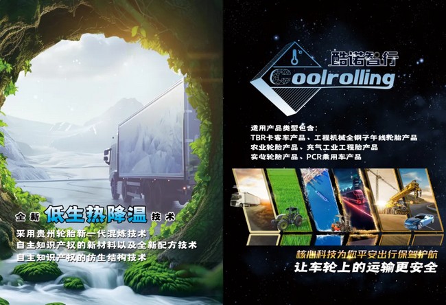 电骋·远航系列依托贵州轮胎“酷诺智行”技术,实现低生热、低滚阻与高耐久的统一。该技术通过优化材料配方与结构设计,有效降低轮胎运行温度,减少能量损耗,为电动商用车续航提升和故障率降低提供技术支撑。