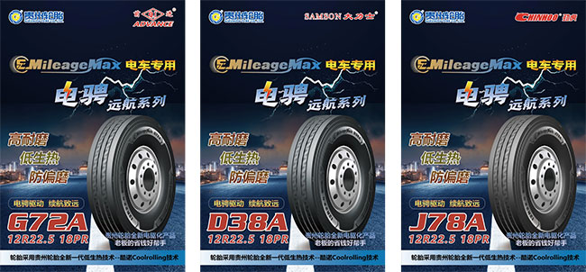 其中,专为新能源卡客车打造的电骋系列,以“长效续航,驰骋万里”为核心价值主张,旗下远航系列针对电动商用车运营中的各项挑战,推出覆盖不同运输场景的专业轮胎解决方案。
